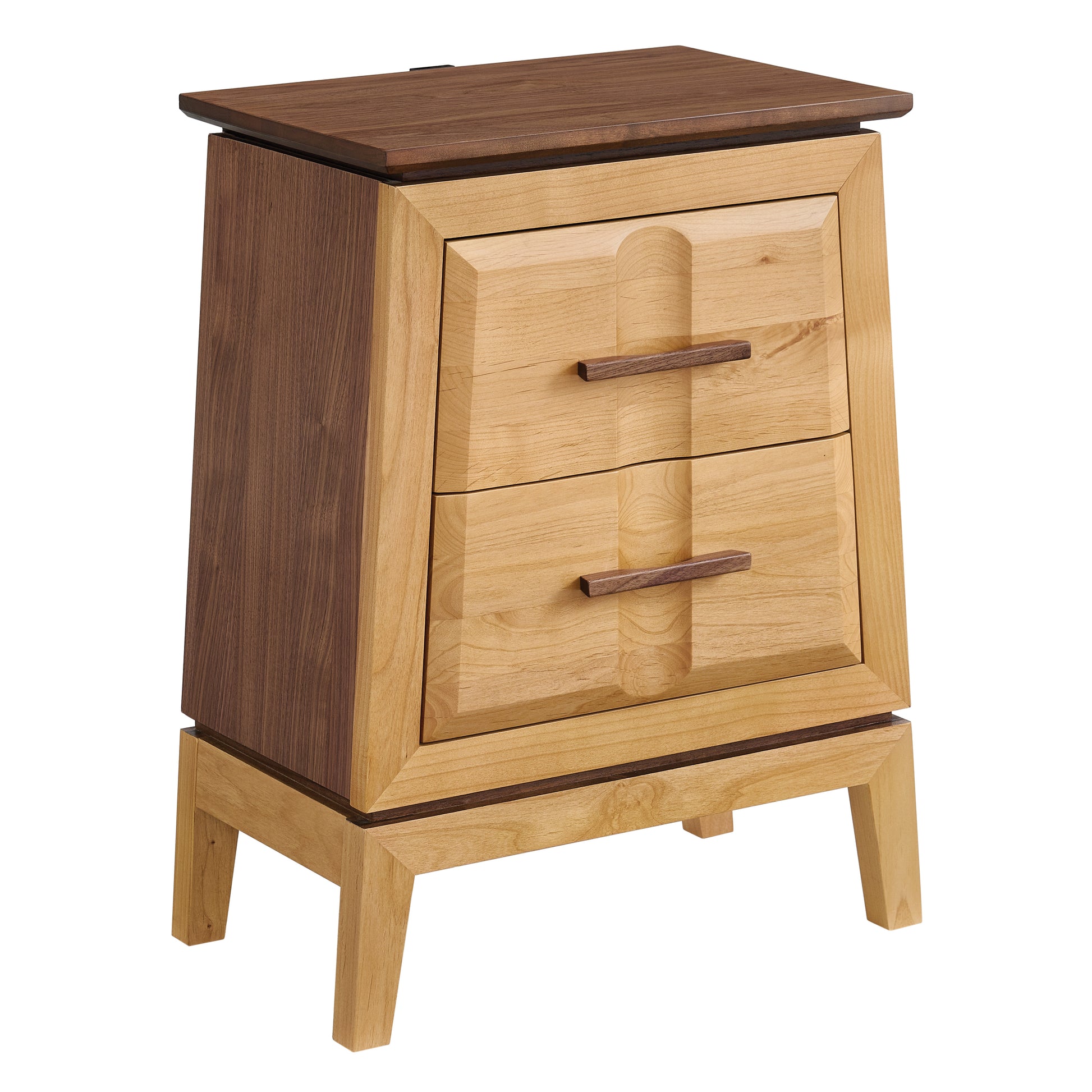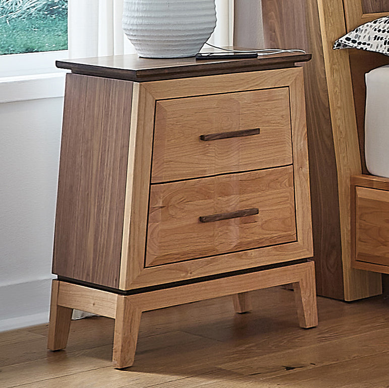 This collection was inspired by mid-century styling yet has a dramatic flair all its own. The remarkable combination of American Alder and Black Walnut hardwoods is stunning. Complementing this beautiful blend are bold design choices that set this group apart. A precisely engineered 45-degree miter face frame seamlessly surrounds spacious inset drawers. Coved drawer fronts exude solid wood and ensure the solid Black Walnut drawer pulls are a stand out feature.