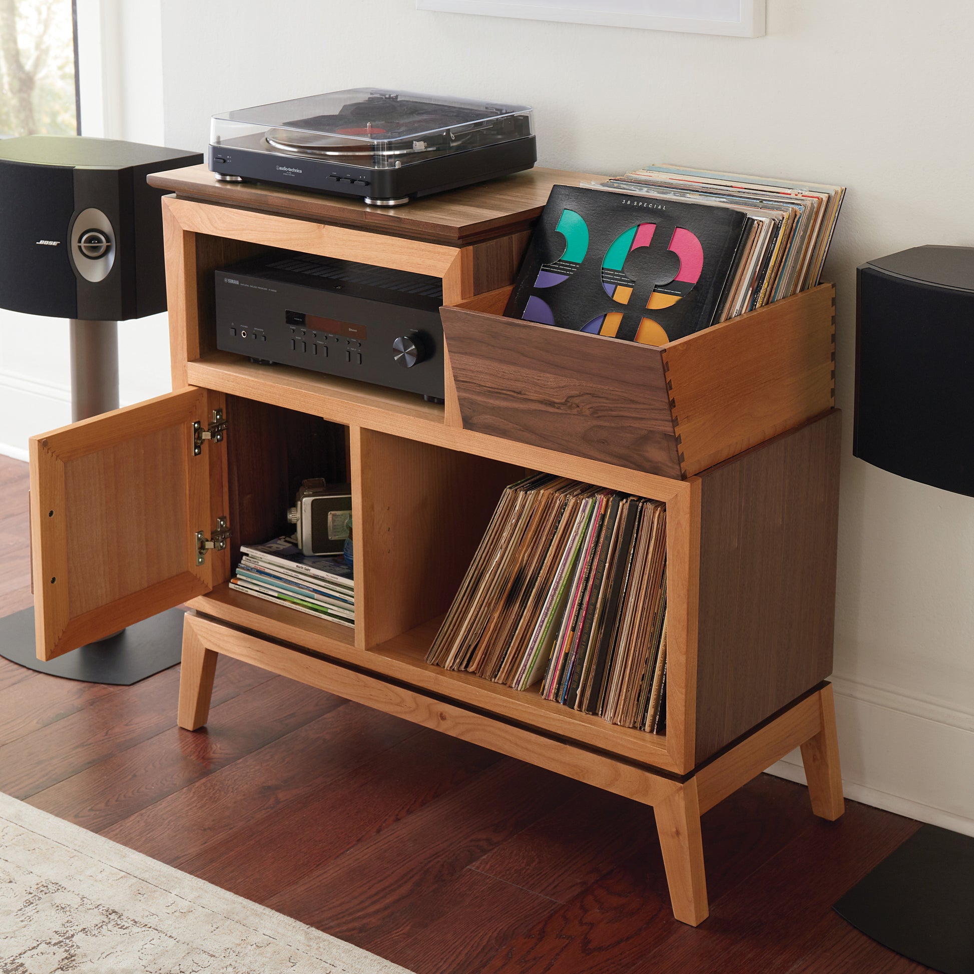 - audio; turntable & receiver storage