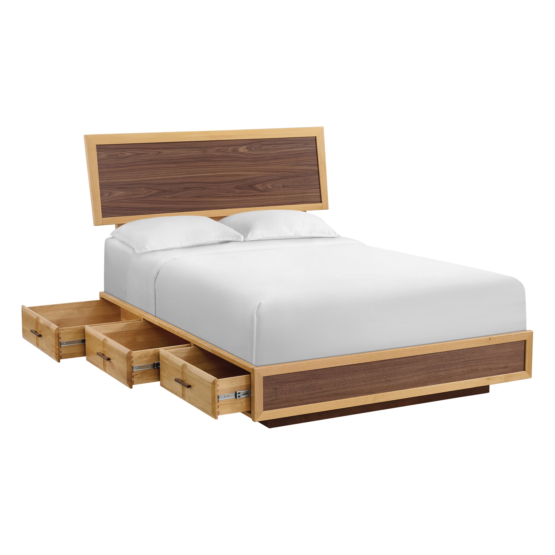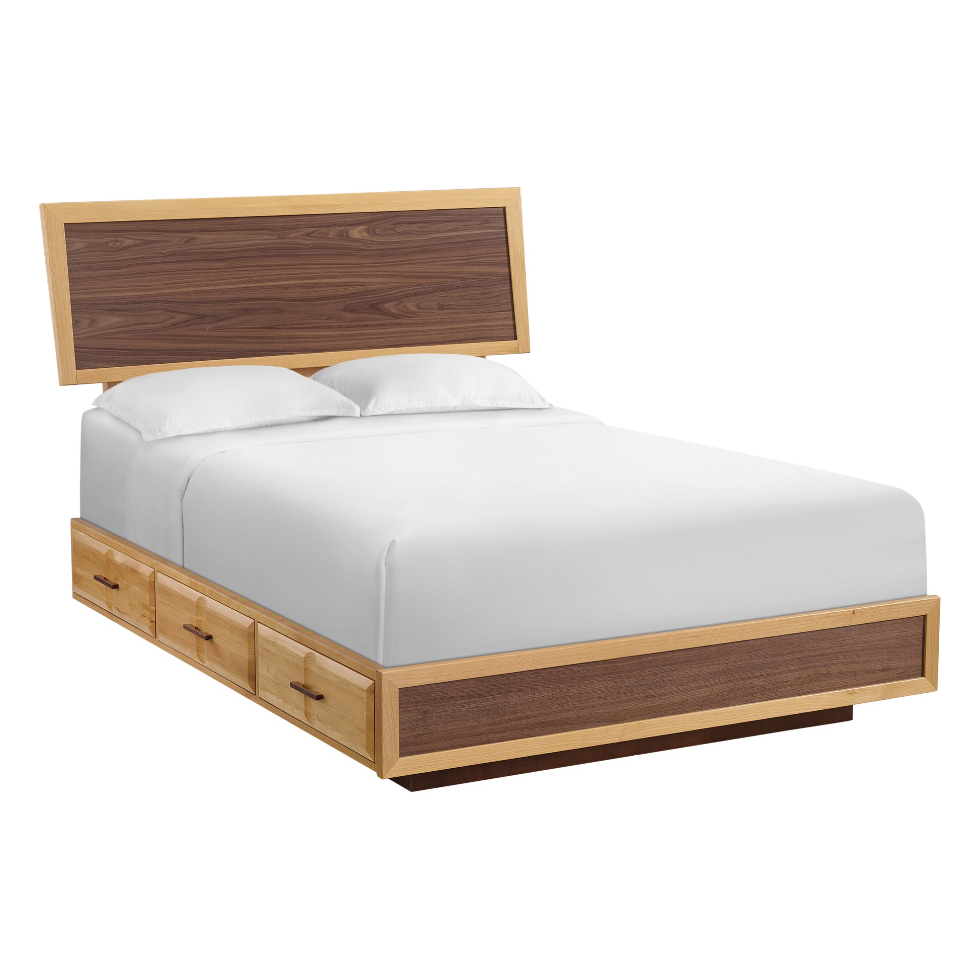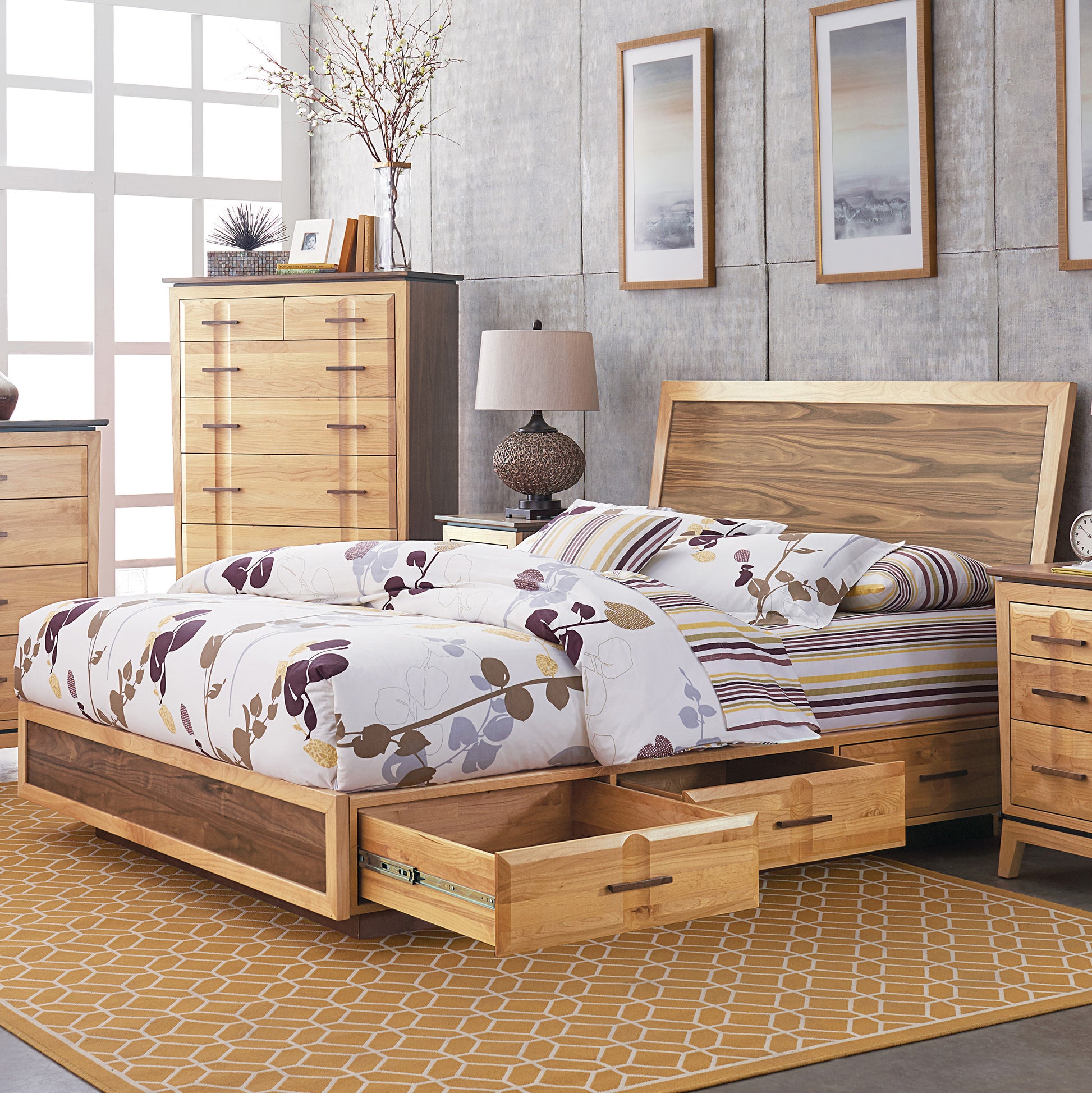 This collection was inspired by mid-century styling yet has a dramatic flair all its own. The remarkable combination of American Alder and Black Walnut hardwoods is stunning. Complementing this beautiful blend are bold design choices that set this group apart. A precisely engineered 45-degree miter face frame seamlessly surrounds spacious inset drawers. Coved drawer fronts exude solid wood and ensure the solid Black Walnut drawer pulls are a stand out feature. Beds offered in two styles for differing design aesthetics.
