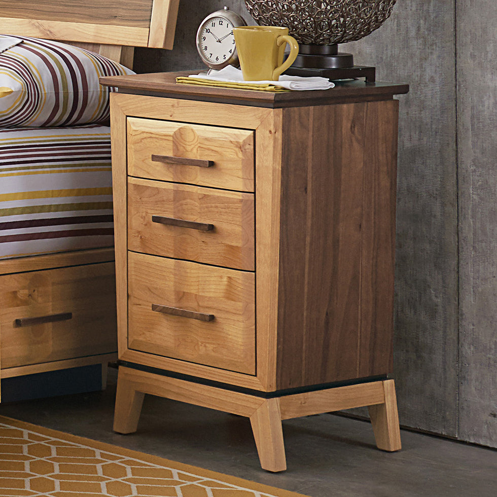 This collection was inspired by mid-century styling yet has a dramatic flair all its own. The remarkable combination of American Alder and Black Walnut hardwoods is stunning. Complementing this beautiful blend are bold design choices that set this group apart. A precisely engineered 45-degree miter face frame seamlessly surrounds spacious inset drawers. Coved drawer fronts exude solid wood and ensure the solid Black Walnut drawer pulls are a stand out feature.