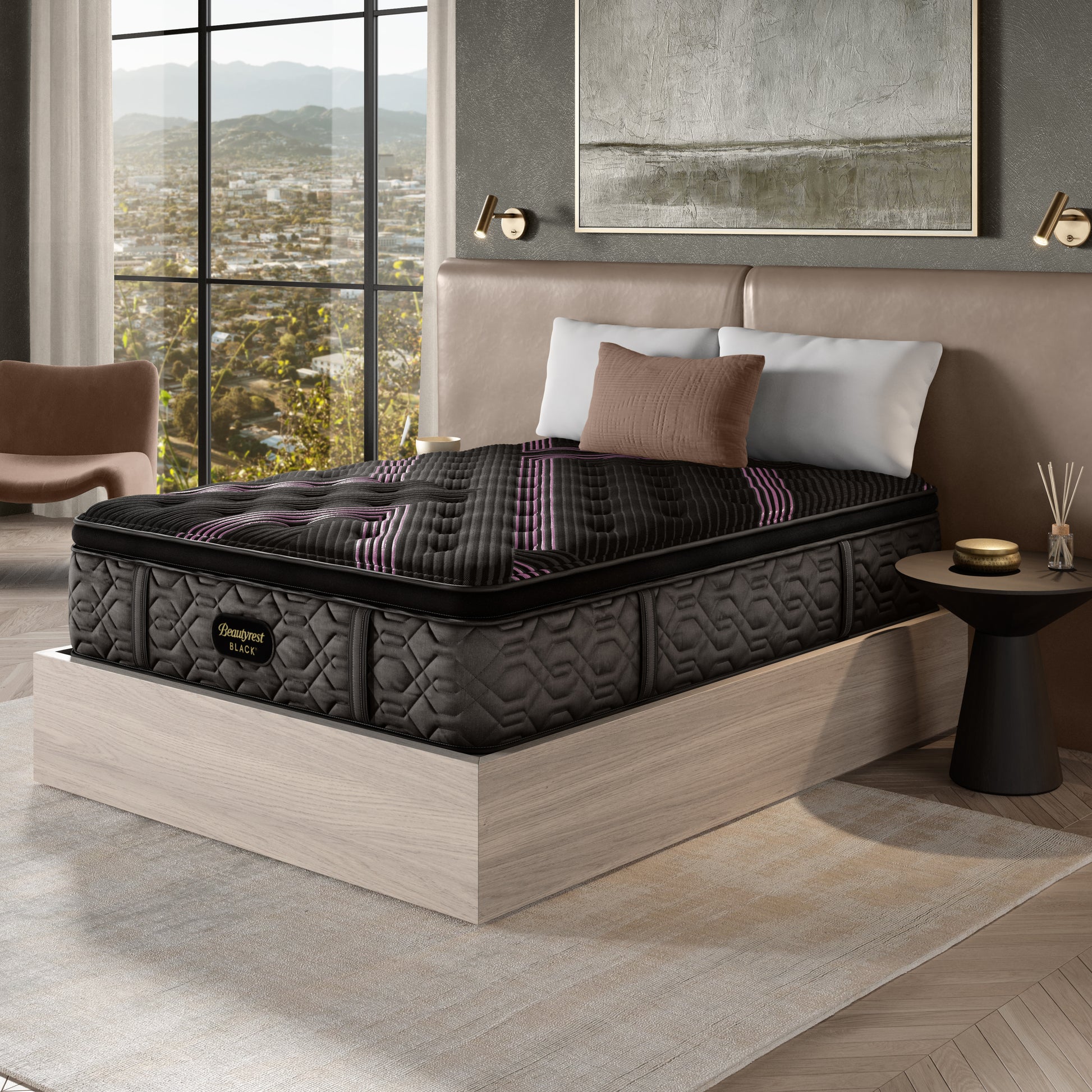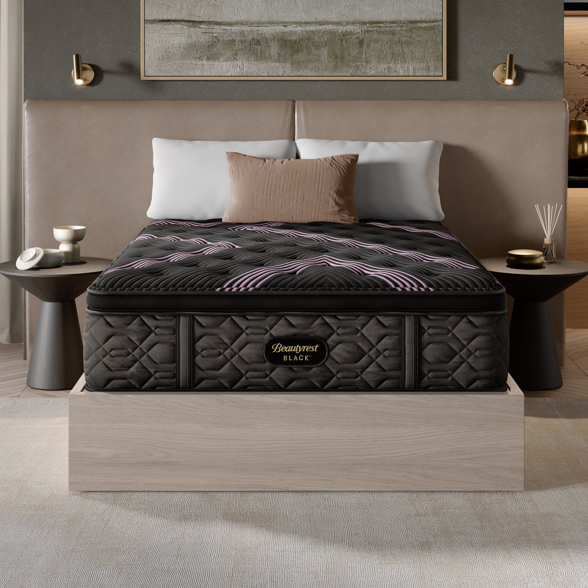 Discover where luxury meets innovation with Beautyrest Black®. Designed with Triple-Stranded Pocketed Coil® Technology, this mattress offers advanced individualized support and motion separation. Sleep Climate™ Technology works with a Micro Diamond™ Memory Foam upgrade to enhance heat transfer from the mattress, while a SurfaceTouch™ Gel Memory Foam upgrade is quilted directly into the mattress surface for immediate pressure relief. Experience our most advanced sleep system with Beautyrest Black®, so you can rest luxuriously.