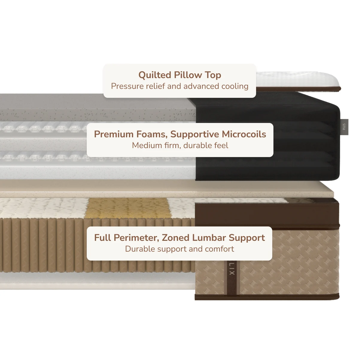 5 premium, high-density foam layers designed specifically for plus size sleepers to provide a sturdy, supportive feel.