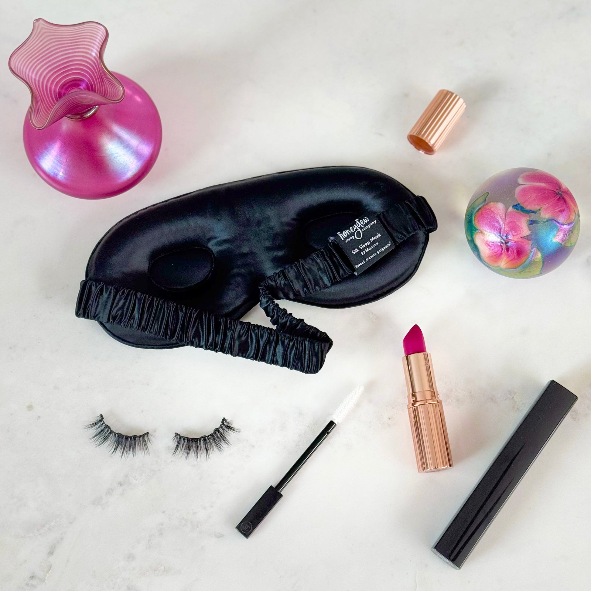 3D Contoured Silk Sleep Mask – Designed with soft, cushioned eye pads to keep the mask from resting directly on your eyes, providing eyelash protection and extra comfort