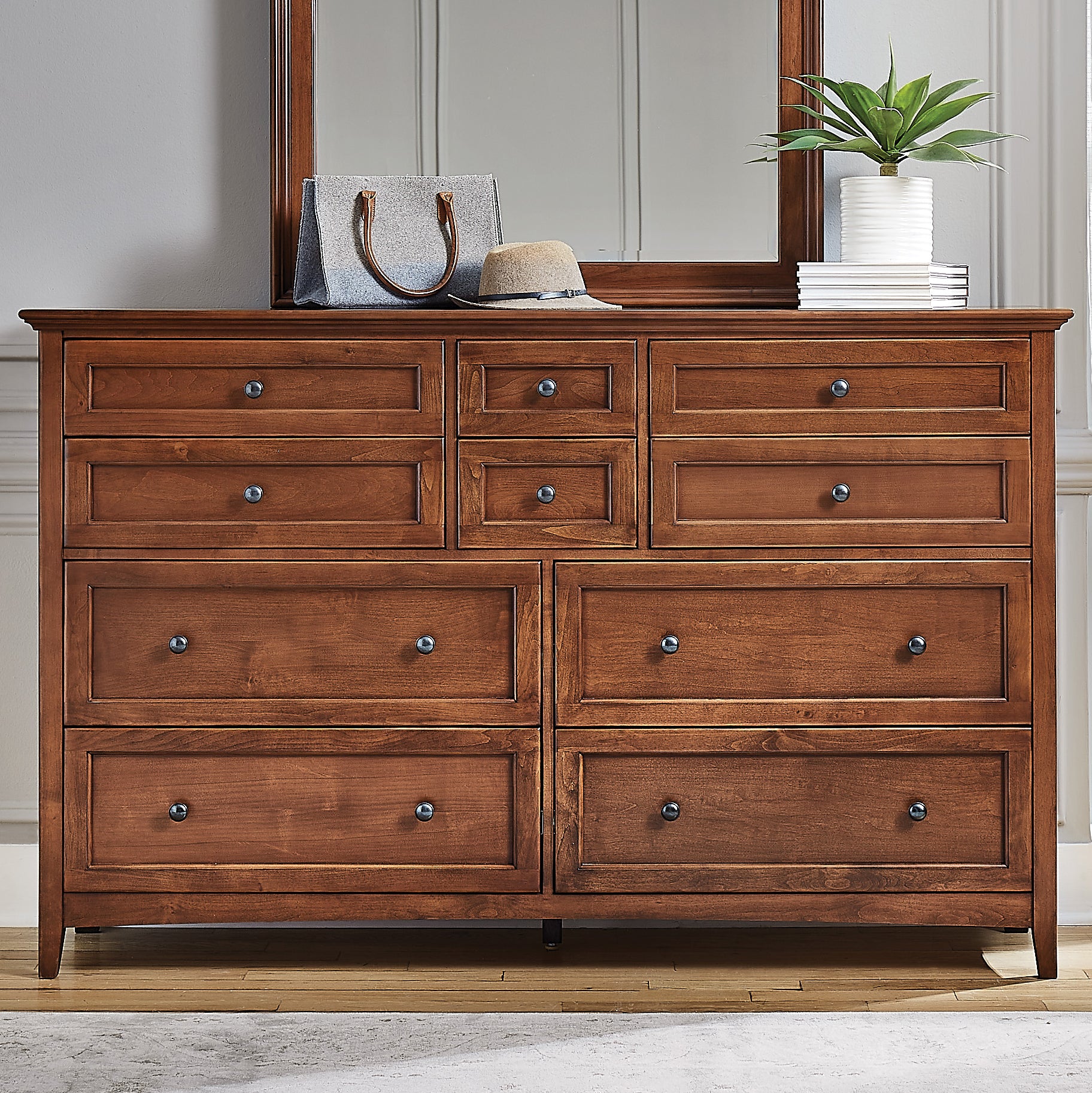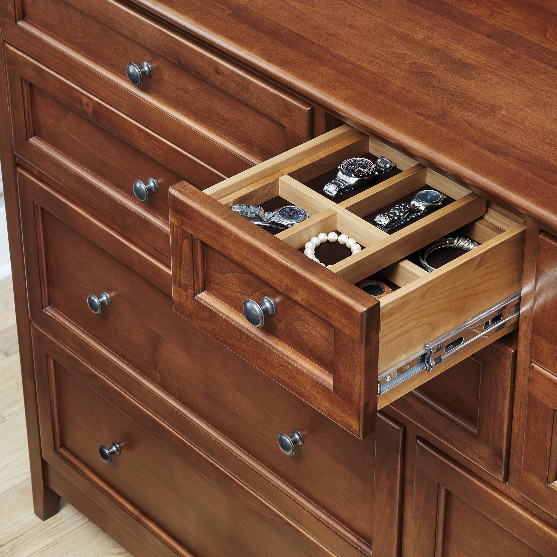 Beautiful design and elegant details make for a striking combination in this collection made from solid American Alder and Alder veneered wood panels. Old World craftsmanship features such as English dovetail drawers, mortise and tenon joinery and fitted backs ensure structural strength and stability. Full extension metal ball bearing drawer slides provide smooth and effortless access to spacious drawers.