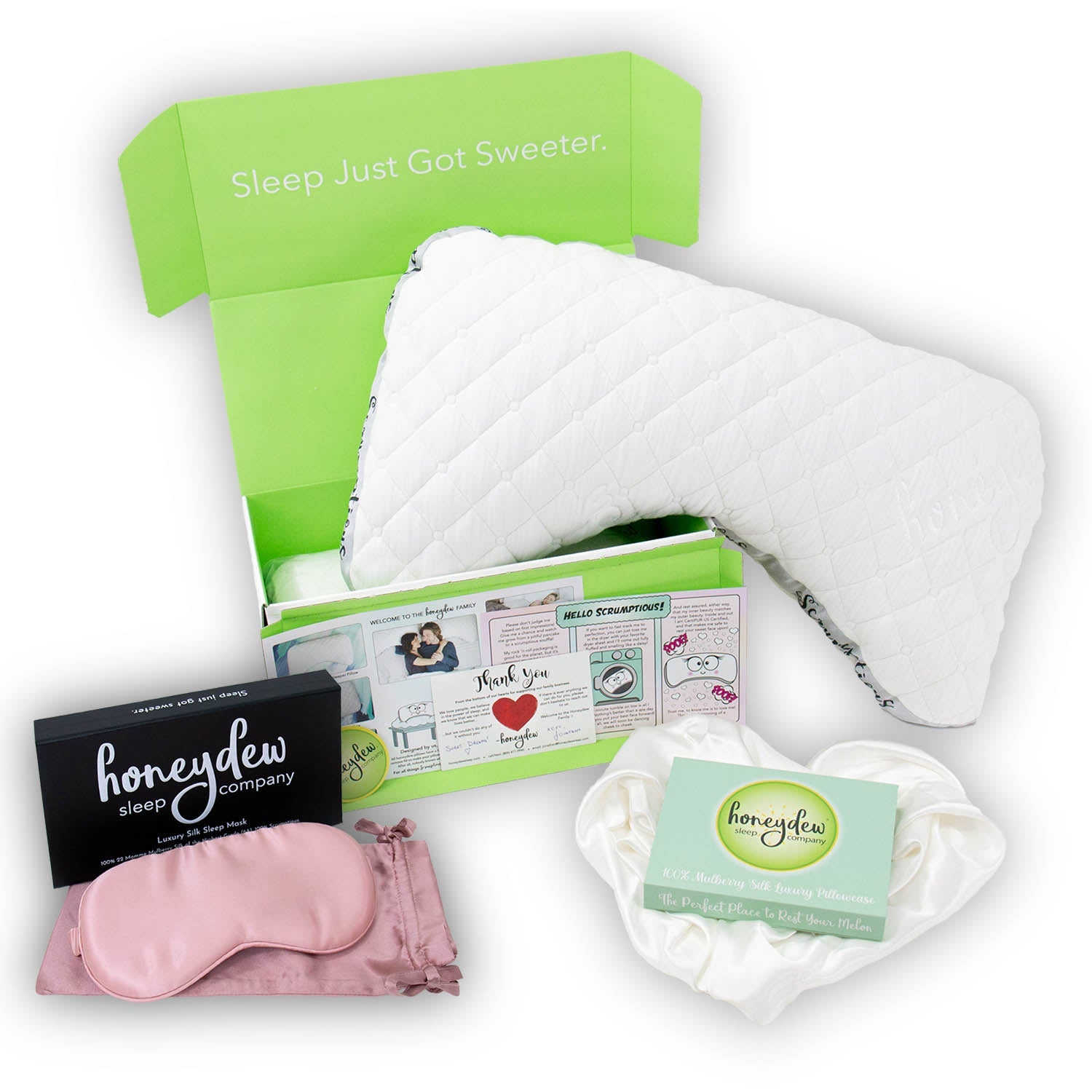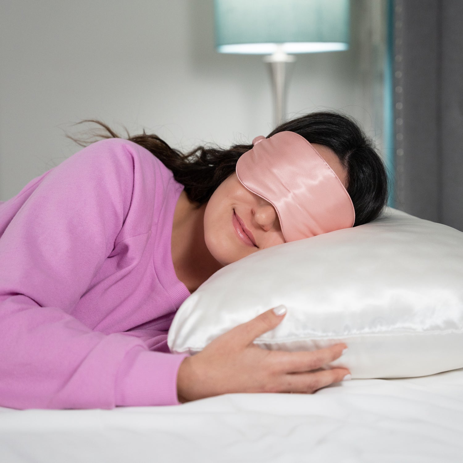 We Combined Our Pure Mulberry Silk Sleep Mask and Pillowcase (to Reduce Facial Friction and Frizzy Follicles ) with Our Most Advanced Wrinkle Reducing Pillow That Feels Like Heaven. Meet Your Own Personal Glam Squad.