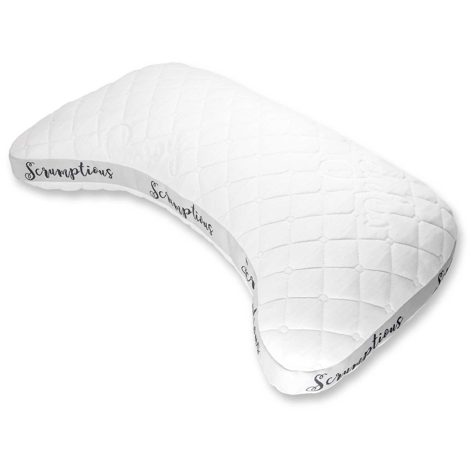 The Scrumptious Side Pillow features a unique curve that cradles your neck and shoulders for ultimate comfort, and perfect alignment. The proprietary fill delivers a luxurious feel and superior support, while alleviating neck and shoulder pain.